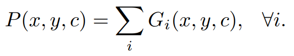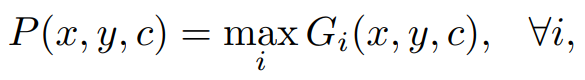 형상이 같은 Instance-wise Segmentation Map들을 합칠 때는 같은 위치에 있는 원소 값끼리(Element-wise) 계산한다. 계산 방법은 최대값 혹은 평균값을 구하는 방법이 있다. 수식으로는 아래 식1과 식2처럼 표현한다. g¡ ∈ R(W x H x C) 는 i번째 proposal의 segmentation map이다. ; 본 논문의 수식에서는 W x H 순서로 표기한다. W와 H는 proposal의 너비와 높이이고 C는 모든 클래스의 수다. 이때 G¡는 g¡를 zero-padding한 후 원래 이미지와 같은 크기가 된 Instance-wise Segmentation Map이다. 식 2에서는 평균 계산과 합 계산의 의미가 다르지 않기 때문에 합 계산으로 표기한 것으로 보인다.