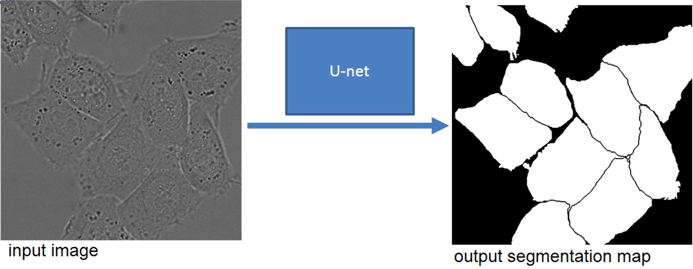 본 논문의 과제는 세포 이미지(그림 1)에서 세포막과 배경, 서로 맞닿은 세포막(Touching objects of the same class)을 구분하는 세그멘테이션이다. 세그멘테이션을 위해서는 두 가지 조건이 있다. 먼저 위치 검출(Localization) 성능이 좋아야 한다. 이미지 분류(Image Recognition) 과제에서는 이미지에 어떤 객체가 있는지 분류만 하면 된다. 세그멘테이션에서는 분류하고자 하는 클래스별로 객체가 어디에 위치해 있는지도 정확히 알아야 한다. 두번째로 Deep CNN기반 세그멘테이션 모델을 학습시키려면 데이터가 많아야 한다. Semantic Segmentation 모델은 픽셀마다 레이블된 이미지로 학습한다. 그런데 바이오 분야에서는 픽셀마다 레이블된 이미지를 구하기 어렵다. 여러 가지 이유가 있겠지만, 일상적인 이미지는 누구나 레이블링할 수 있는 반면 바이오 이미지를 레이블링할 수 있는 인력은 일정 수준의 전문 지식을 갖춰야 하기 때문일 것이다.