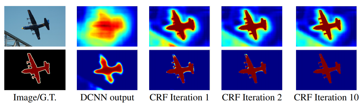 참고로 short-range CRF는 특징맵을 더 부드럽게 만들어주는 효과가 있다. 그림 5 DCNN output의 스코어맵을 봤을 때 이미 충분히 있고, CRF를 이용하는 목적은 객체의 테두리를 더 명확히 구분하는 데 목적이 있기 때문에 short-range CRF를 사용하는 것은 오히려 성능을 안 좋게 만든다.