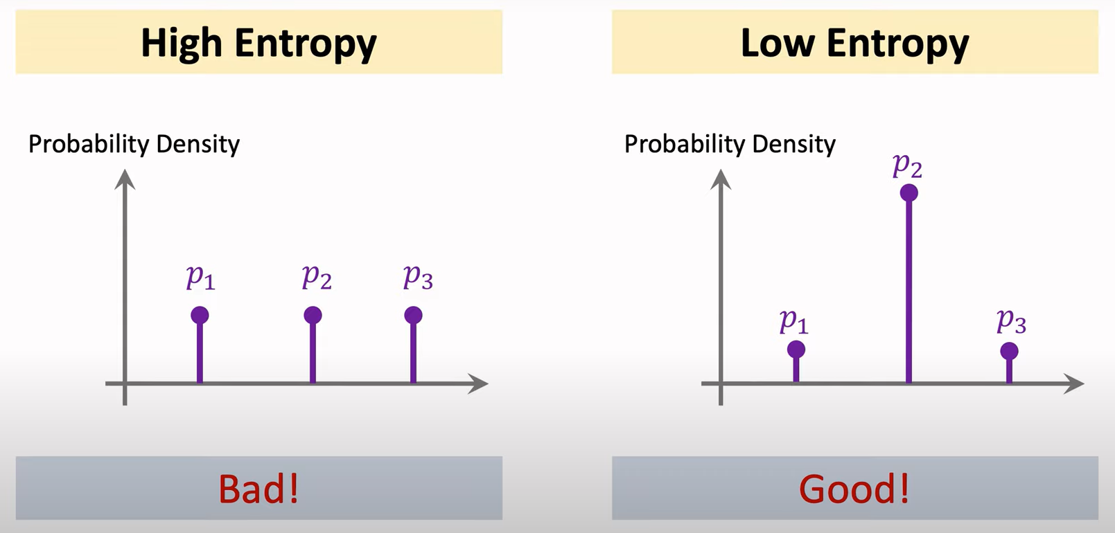 위 그림에서 왼쪽 그래프는 클래스 1, 2, 3에 대한 예측 확률이 비등하다. 반면 오른쪽 그래프는 두번째 클래스의 예측 확률이 높다. Entropy를 계산하면 오른쪽 그래프가 더 낮게 나온다. 즉, Entropy Regularization를 이용하면 오른쪽 그래프와 같이 예측하도록 파라미터를 업데이트할 수 있다.