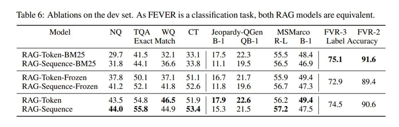 Transformer에서 Q만 업데이트하고 K는 업데이트하지 않는데도, Q Transform 벡터와 K Transform 벡터를 이용해 Attention을 구합니다. 수학적, 연역적으로 서로 다른 임베딩 모델을 사용해도 되는지는 모르지만, Transformer와 본 논문에서 나타나는 결과를 보았을 때 서로 다른 임베딩 모델을 이용해도 둘 사이의 벡터 유사도를 구할 수 있다고 결론내릴 수 있습니다. 아래 실험 결과에서도 쿼리 임베딩 모델을 Frozen한 경우(두번째 행)보다 학습 시킨 경우(세번째 행)이 10개 Task 모두 더 좋은 성능을 보였습니다.
